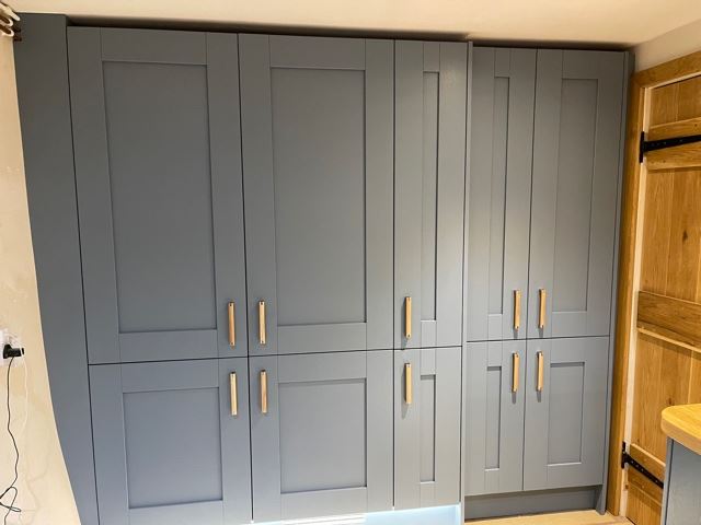 This medium sized kitchen was particularly easy to design in regards to aesthetics. Our client knew exactly what they needed from their new Kitchen and even the colour they liked from a very early point in the design process. However, ensuring we were able to fit everything in whilst working around some interesting shaped walls was more of a challenge. Despite this, we met our specification and this Kitchen really does have it all. Hidden within the cupboards are a vast range of pull outs and drawers to maximise storage space and the scribe on this project really is amazing (if we do say so ourselves).