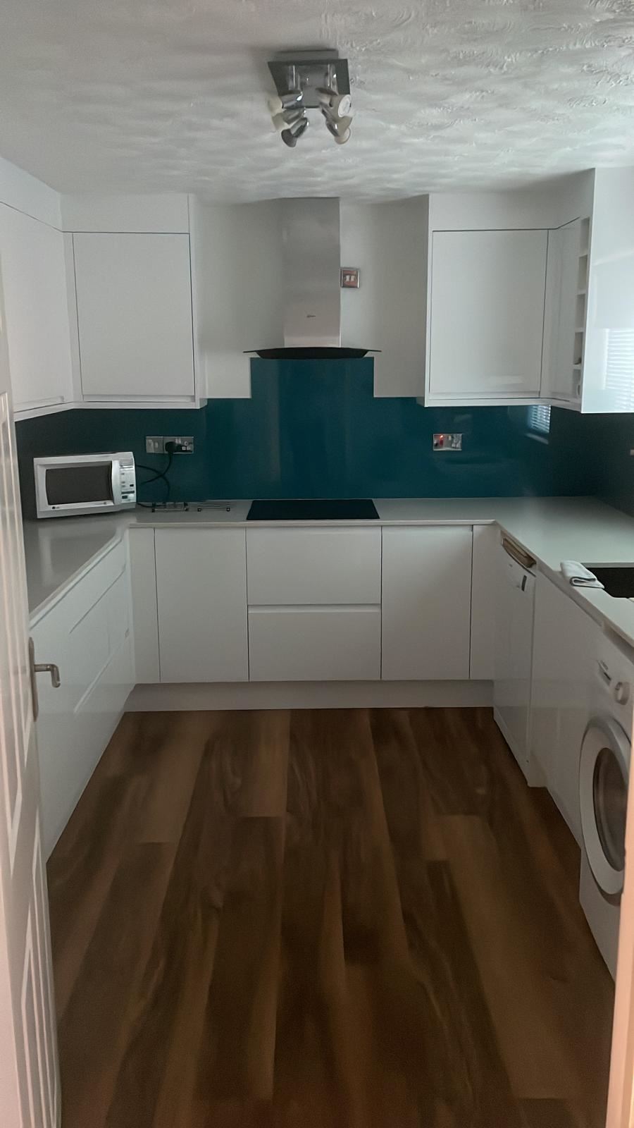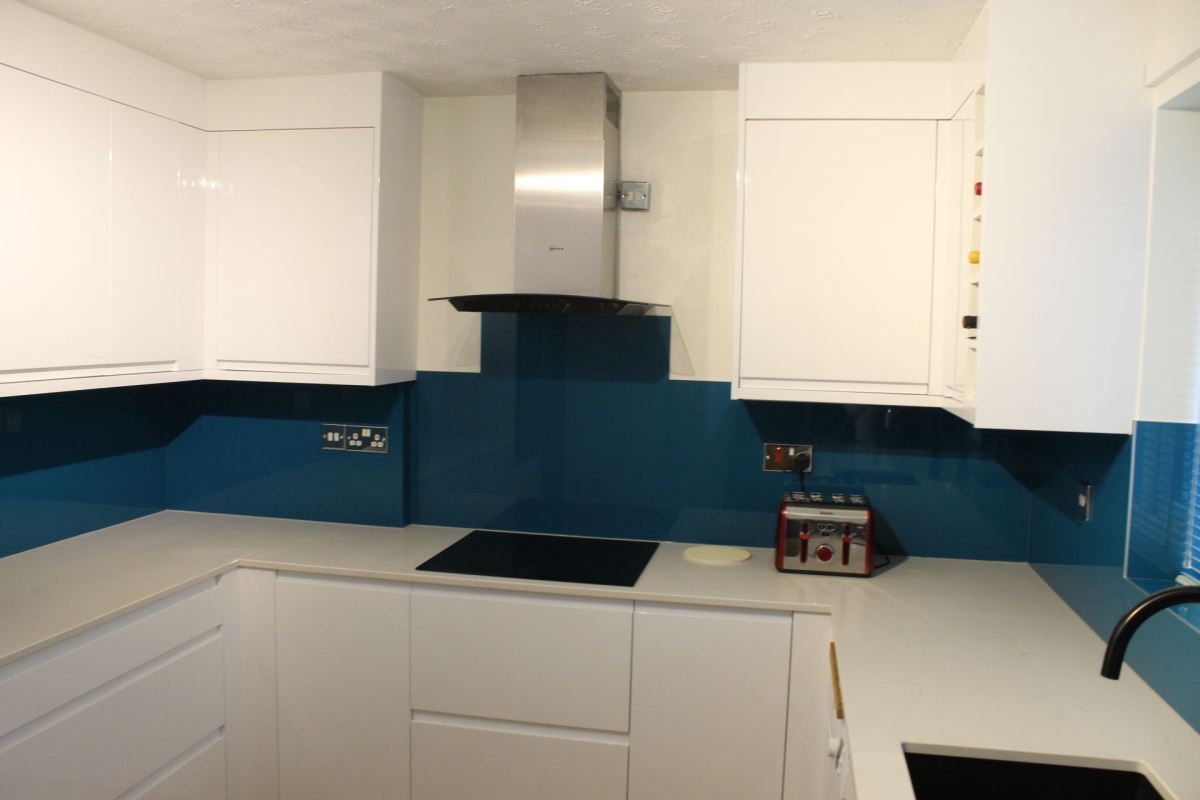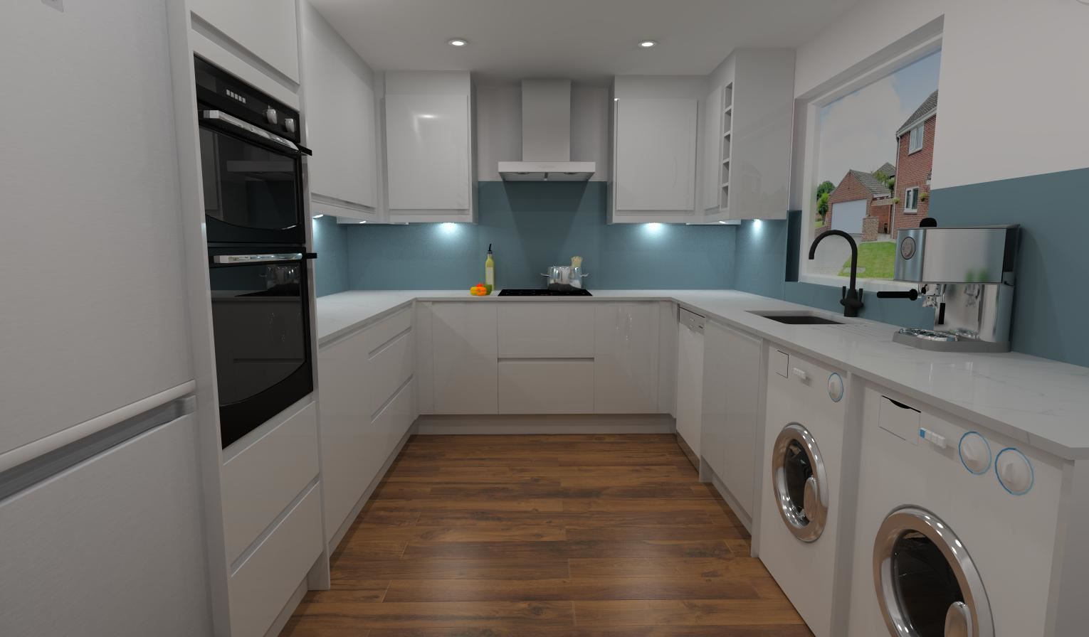For our client increased durability and longevity were the drive behind this Kitchen project. Through-out the design process many different colour options and many different variations of door style were explored; we had great fun creating these different designs. In the end, to add a sense of brightness to the space, our client decided upon a White Gloss door. The contrast in colour provided by the Alloy splash back really works in this space, the Kitchen feels light, airy and welcoming.