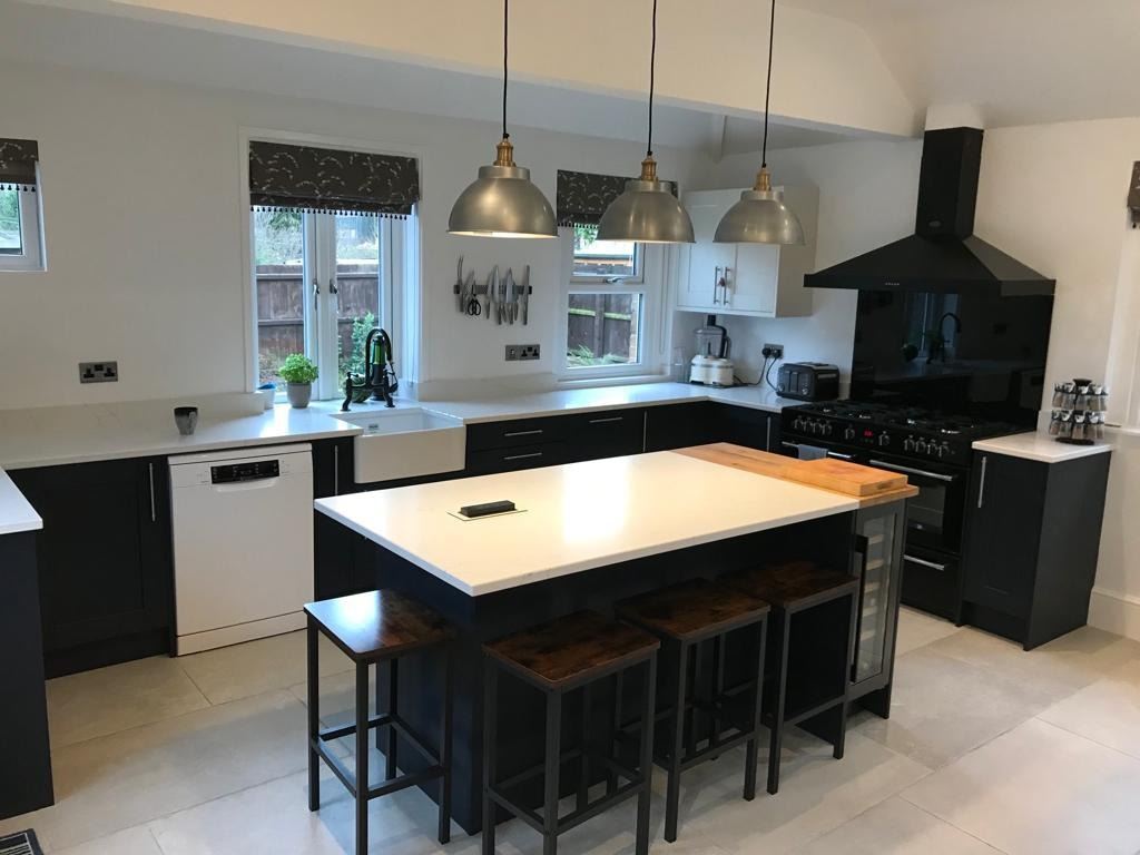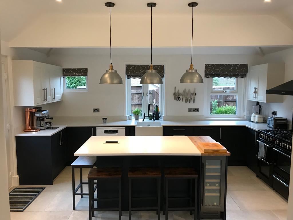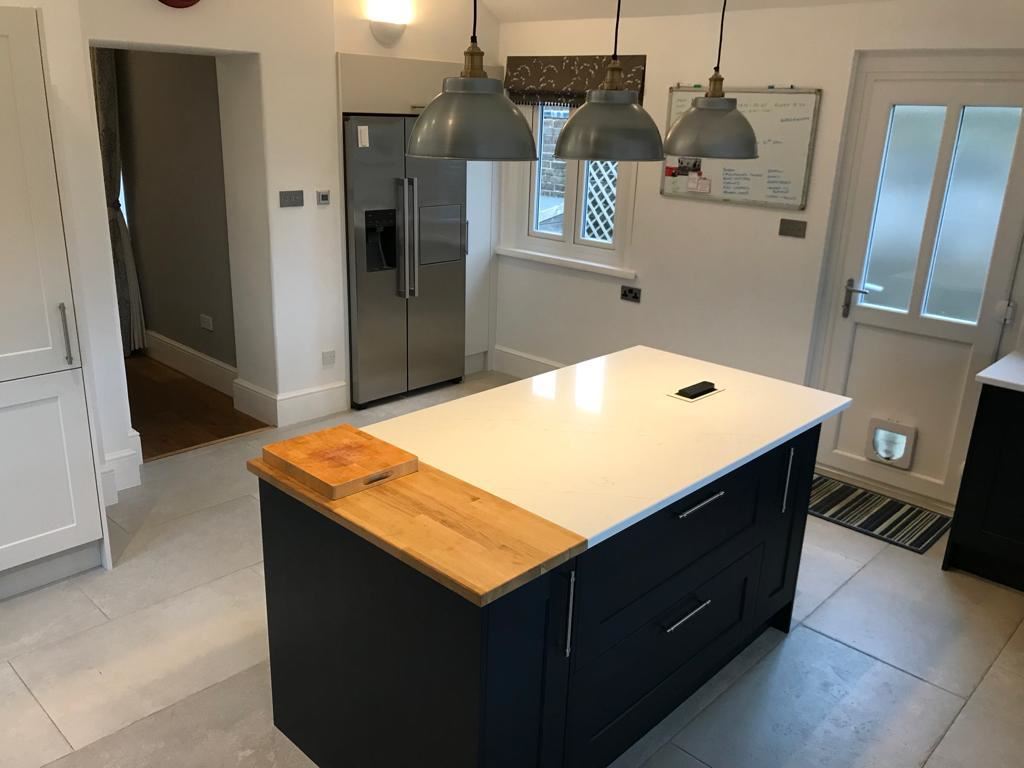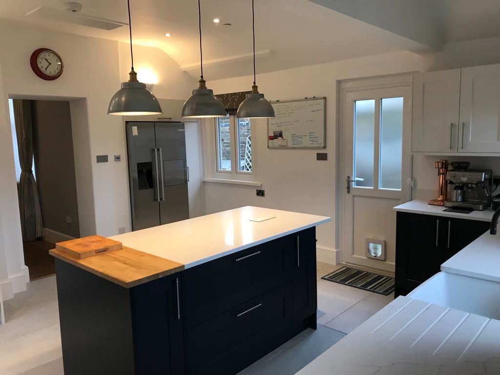 The main aim of this town house kitchen upgrade was to ensure the kitchen was more user friendly. The beautiful windows are a true feature of this house and the large amount in this space meant the layout needed extra consideration. Where to place a large American style Fridge Freezer, to ensure the room was no imposed upon, was one of our main challenges with this job. Fear not, Andy, Phase 3’s recommended local fitter came to rescue, with the ingenious idea of utilising an already in place panty cupboard by sitting the appliance flush to the wall and adding a bespoke pull out to the side; not only maximising space but giving a wonderfully flush fitted feel to a some what large appliance.