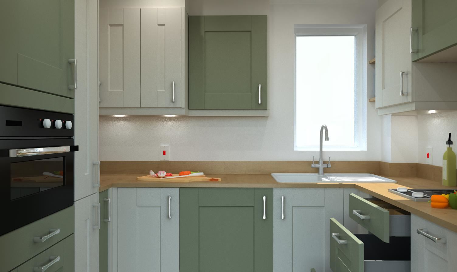 Designing and creating a functional Kitchen for a smaller space is sometimes more challenging than a larger open room. Our recent Kitchen project was compact however, our clients aim was to squeeze as much storage into the room as possible, utilising the space available and with our highly skilled and knowledgeable team, we were able to do just that by incorporating the following bespoke elements:
