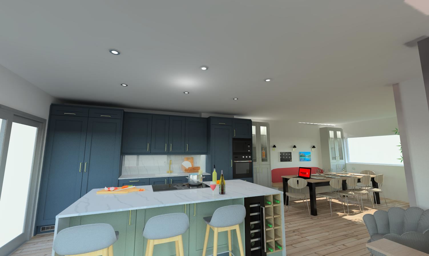 The clever use of contrast in colour and texture enabled us to create a truly beautiful Kitchen diner space which can be used by our client for many many years to come.